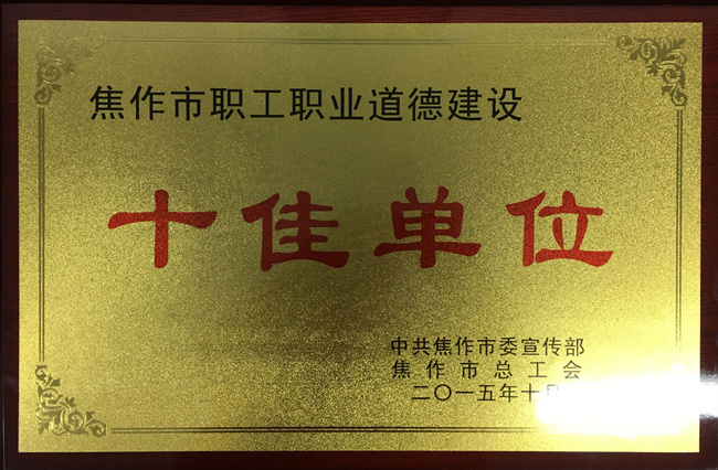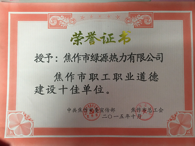 熱烈祝賀焦作市綠源熱力有限公司獲得焦作市職工職業(yè)道德建設十佳單位