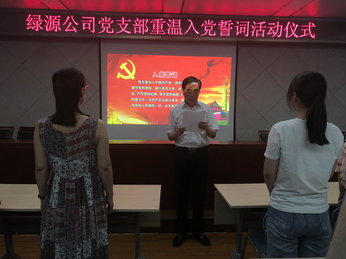 七一前夕,中共焦作市綠源熱力有限公司黨支部在公司二樓會議室舉行重溫入黨誓詞宣誓儀式,公司全體黨員在黨支部書記盧躍進同志的帶領(lǐng)下一起重溫入黨誓詞,并進行了宣誓。公司黨支部書記盧躍進同志作了重要講話,他指出重溫入黨誓詞可以使每位黨員重溫當年入黨時的決心和信念,對比今天的認識和行動,始終銘記入黨的誓言,這是對自己的一種鞭策和激勵。能讓廣大黨員干部時刻牢記“為人民服務”的宗旨,做到牢記使命,不忘初心,與時俱進,始終保持黨員的先進性,時刻保持黨的優(yōu)秀傳統(tǒng)和作風,堅定信仰,愛崗敬業(yè),時刻發(fā)揮先鋒模范作用。使每位黨員高標準嚴格要求自己,以更加飽滿的熱情、更加敬業(yè)的態(tài)度、更加充足的干勁,更加踏實的作風,為公司供熱事業(yè)的發(fā)展再立新功。