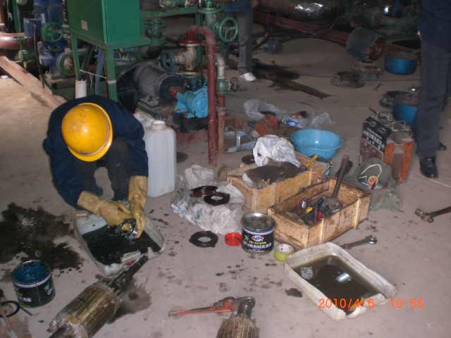 (4)對(duì)所有補(bǔ)水泵先拆開檢查水泵葉輪是否磨損,更換,聯(lián)軸器是否磨損更換,再檢查水泵電機(jī)軸承,先清洗,然后判斷是否磨損,更換,最后再重新加黃油安裝;