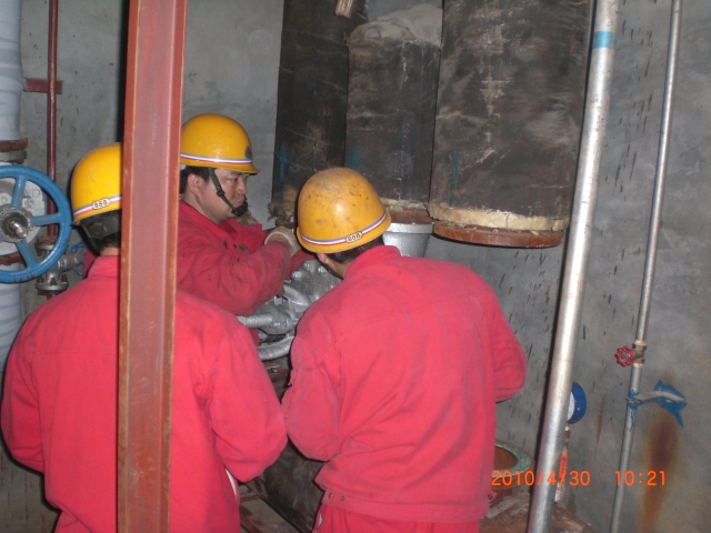 李虎組4月28日上午錦祥花園小區(qū)換熱站檢修結(jié)束。4月28日下午到技術(shù)監(jiān)督局換熱站檢修。除正常檢修水泵,板換,配電柜,除污器外,還要更換8個DN200截止閥,2個DN150截止閥。截至5月7日,換熱站的檢修工作一切都依原計劃順利進行。