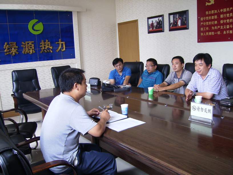 2010年7月27日,濮陽市熱力公司計量中心盛主任、牛主任一行4人來到焦作市綠源熱力有限公司,就戶用熱量表的使用和安裝經(jīng)驗進行了交流。 圖1為會議交流現(xiàn)場