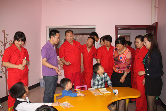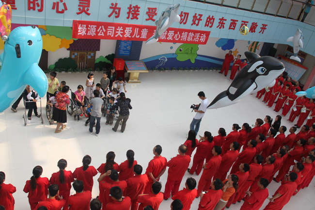 兒童福利院李繼鋒院長和衛(wèi)美麗書記接待了綠源熱力,并對綠源熱力一直以來支持兒童福利院的建設、關心兒童福利工作表示感謝。之后福利院的兒童們現(xiàn)場表演了節(jié)目,看了孩子們的表演,大家心情非常激動,有些不禁潸然淚下;緊接著捐款儀式開始,大家踴躍捐款,50元、100元、200元…捐款儀式結(jié)束后,李院長帶領我們參觀了福利院各種康復和教育班,看望了正在接受教育和康復治療的兒童。