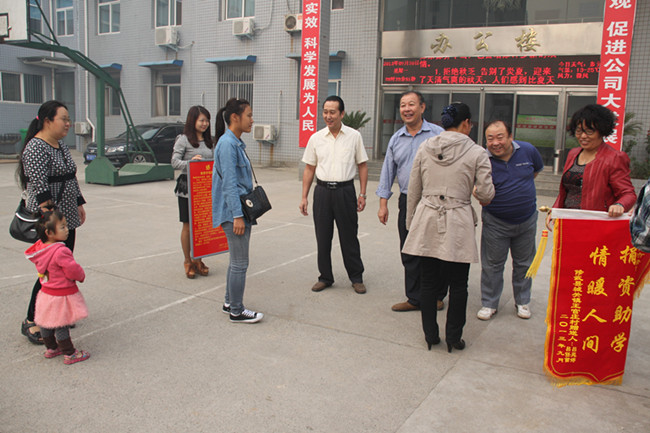 9月30日早上,公司已故職工呂宏飛的家屬專程給公司送來一面錦旗,上面寫著“捐資助學,情暖人間”八個大字,以表達對公司在他們最需要幫助的時候慷慨伸出援助之手給予這個家庭無私的幫助,