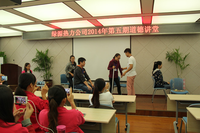 本期道德講堂共分為五個環(huán)節(jié),第一環(huán)節(jié)是播放歌曲《文明在哪里》,以歌唱的形式傳遞生活中文明禮儀,告訴我們文明禮儀就在身邊,在我們生活中隨處可見。隨后第二個環(huán)節(jié)是公司員工自導(dǎo)自演的小品《讓座》。小品演繹了發(fā)生在我們身邊的文明禮儀故事,風(fēng)格幽默風(fēng)趣贏得了大家陣陣喝彩。文明禮儀小到一言一行,大到做人的基本原則。緊接著在第四環(huán)節(jié)中播放的微電影《承諾》感動了所有在場人員,也讓我們明白了“誠信“的重要意義。社會的進(jìn)步,靠的就是誠信。在活動的第四環(huán)節(jié)講述了發(fā)生在我們身邊的好人好事,對公司員工邢擁軍凡人義舉的先進(jìn)事跡進(jìn)行了講述。并號召大家弘揚(yáng)正能量,以他為榜樣,愛崗敬業(yè),爭做好人好事,為公司文明建設(shè)多作貢獻(xiàn)。其后公司部分員工進(jìn)行了發(fā)言,就本期道德講堂活動的主題和內(nèi)容談了自己的感想,紛紛表示要向榜樣學(xué)習(xí),爭做講道德、講正氣的文明人。