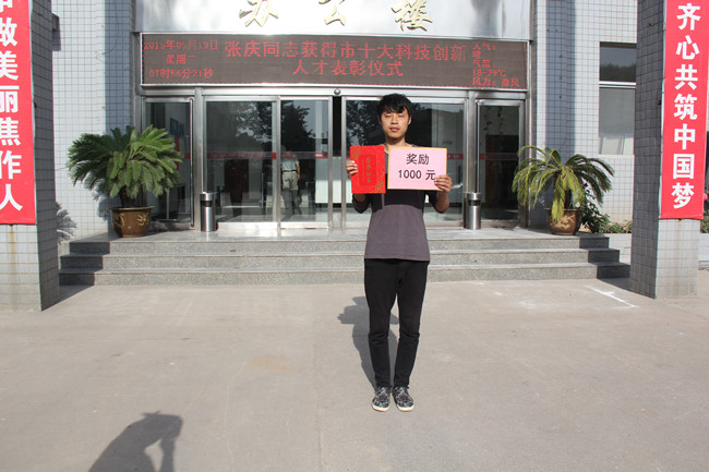 在2014年度全市工會組織和政府工信、科技、財政、人社部門聯(lián)合舉辦的焦作市“為十二五建功立業(yè)職工技術(shù)創(chuàng)新競賽活動”中,焦作市綠源熱力有限公司技術(shù)科張慶同志受到表彰,被授予“焦作市十大職工科技創(chuàng)新人才”榮譽(yù)稱號,并給予1000元人民幣的一次性獎勵。
